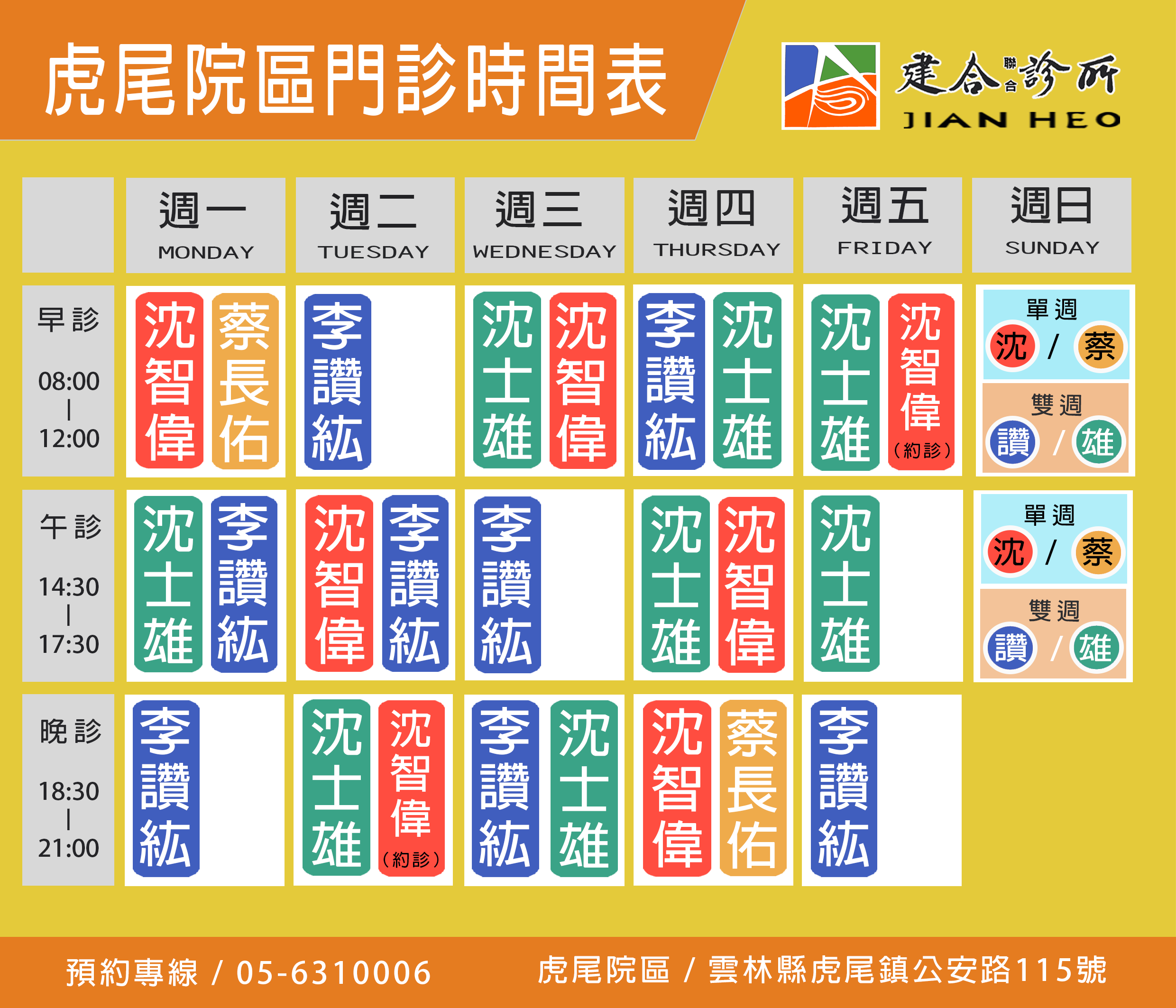 - 如遇無法預測天氣,例如颱風,請留意建合診所FB停休診公告。